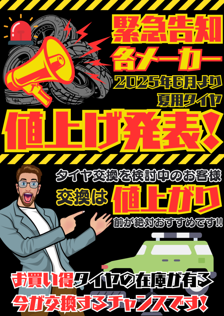 毎年値上げの嵐、2025年もタイヤの値上がりがあります。