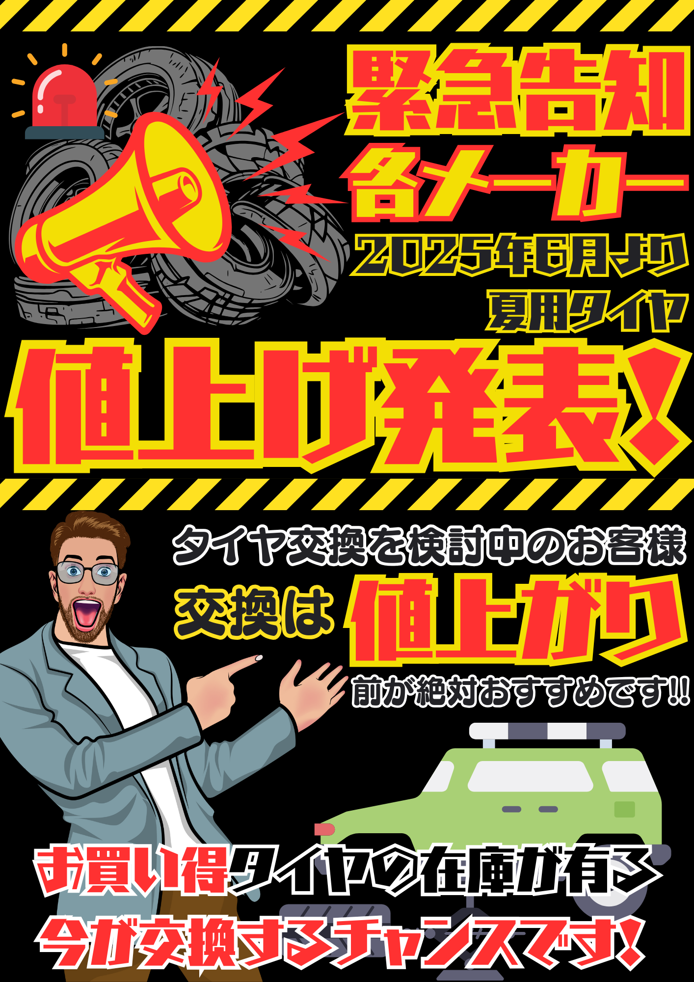 また7月~9月に冬タイヤの値上げもございますのyで、買替を