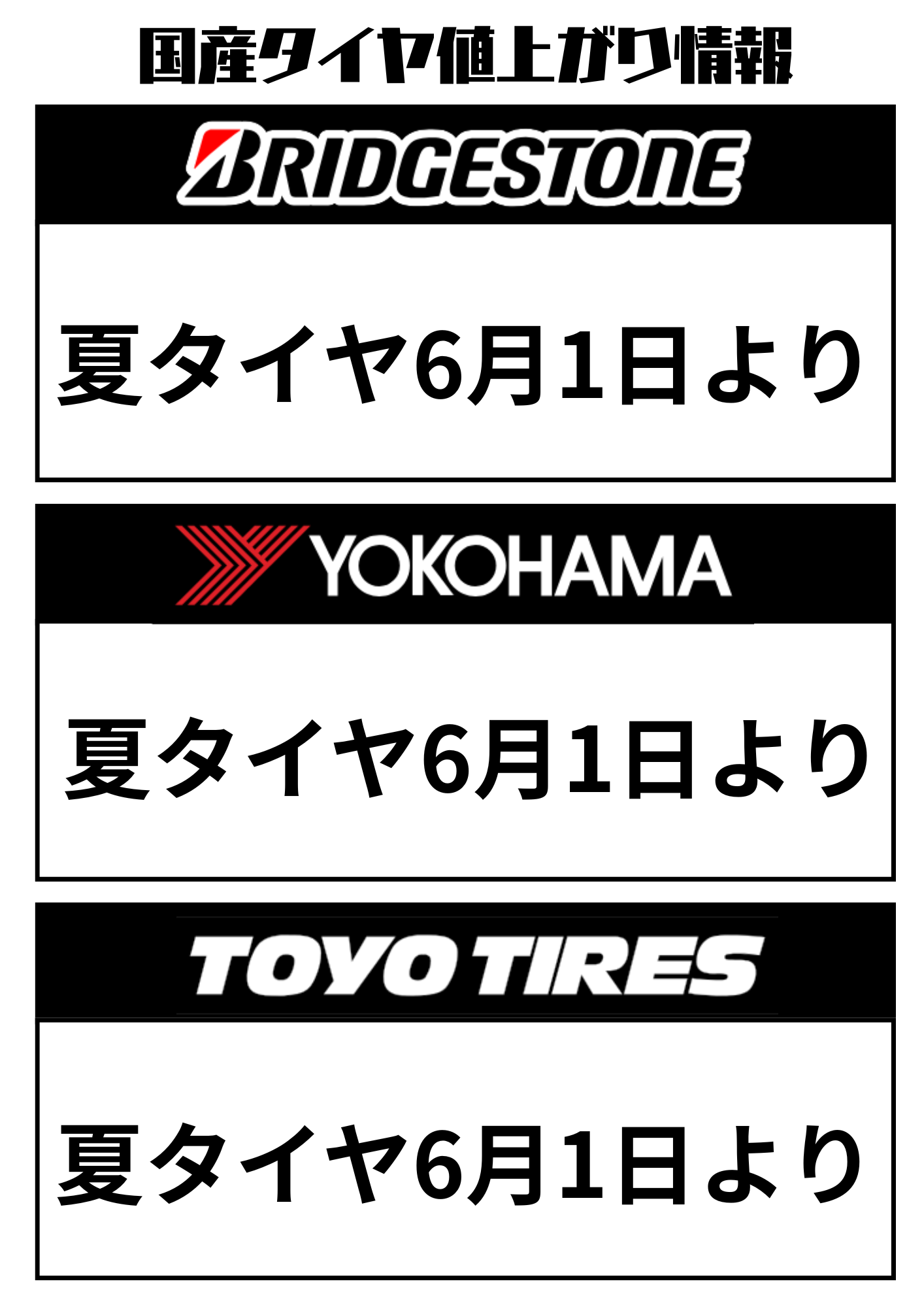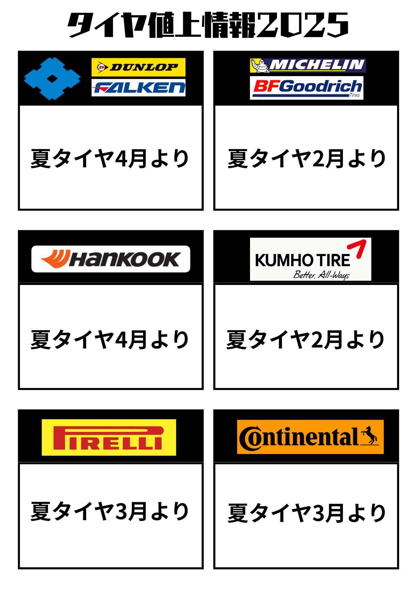 2025年6月より、国内メーカーのタイヤ価格の値上げが発表